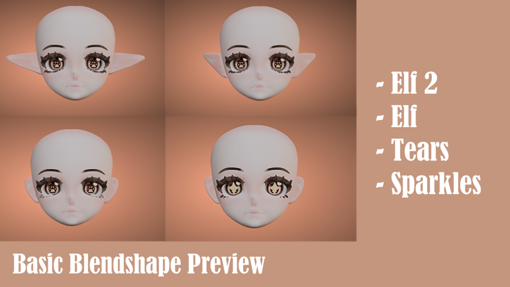 - 4 Extra textures: Black eyelashes, Alpha map, hair cap, transparent base color