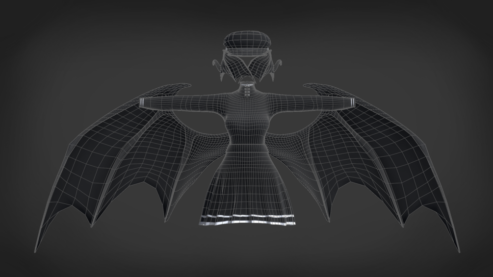 - It only comes with 2 FBXs with five meshes: Dress, hat, horns, wings, and head wings