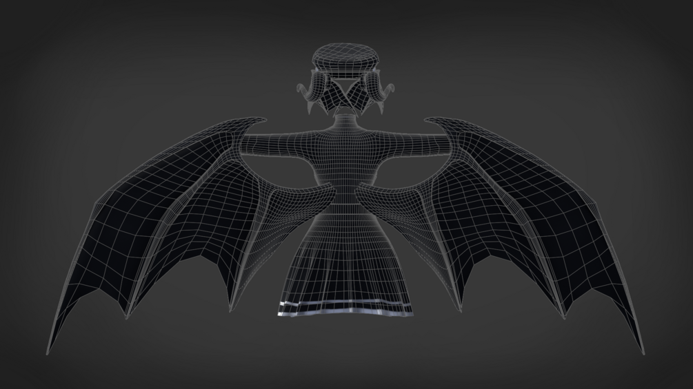- It only comes with 2 FBXs with five meshes: Dress, hat, horns, wings, and head wings